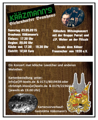 Am 23.05.2015 fand im Bickendorfer Brauhaus Kääzmann's unser erstes kölsches Mitsingkonzert statt.